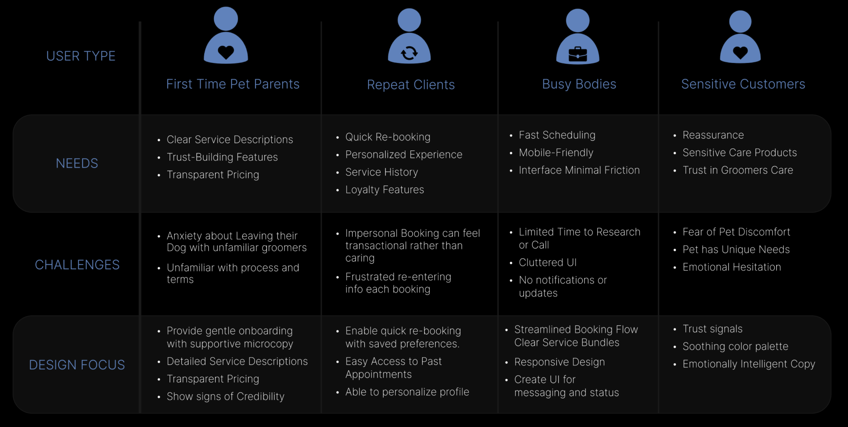 - • Many groomers still rely on outdated sites and phone calls to book appointments.